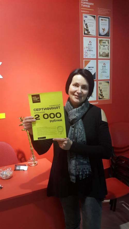 Выбрали Банк Горящих Туров в связи с хорошей ценовой политикой. Желаем развтия, открытия новых офисов в разных районах города. Ждем хороших предложений на отдых. ...