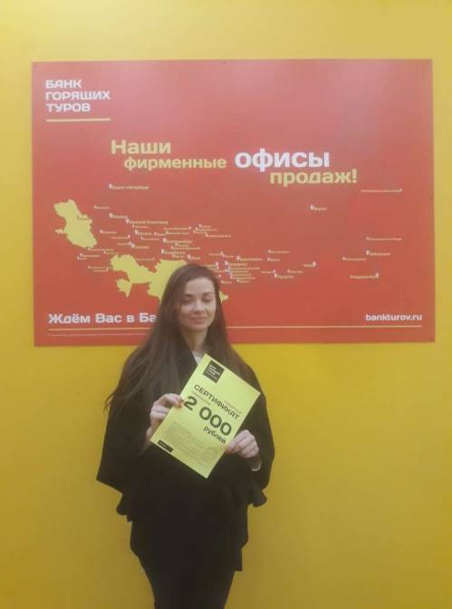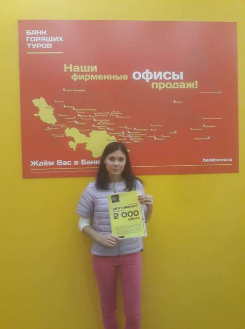 Первый раз обратилась в Банк горящих туров, поняла, что надежная компания. Очень понравился сервис в вашем офисе продаж во Владивостоке. В будущем жду дальнейшего сотрудничест...